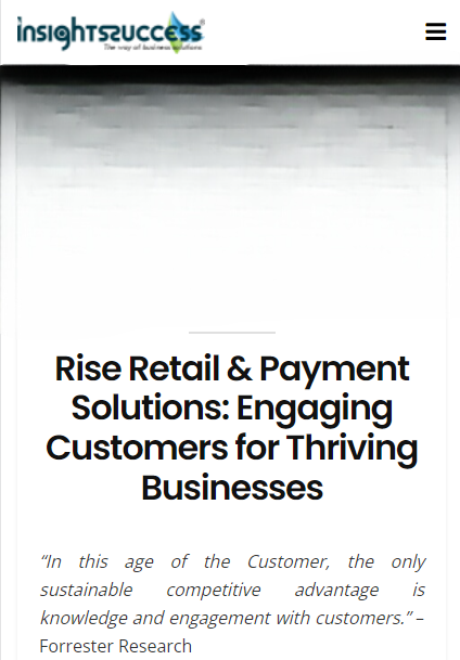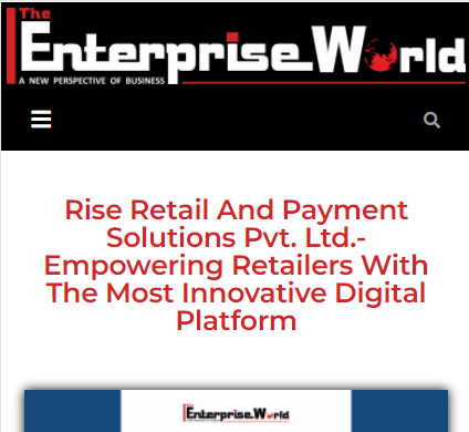 M/S RISE RETAIL & PAYMENT SOLUTIONS PRIVATE LIMITED is a technological solution provider primarily focused on SMB (small and medium business). We develop cost-effective retail-focused technology solutions to enhance the business and profitability of the retailer. Our intent is to revolutionize the purchase experience for a consumer at stores and make it enjoyable with a more value-driven experience.